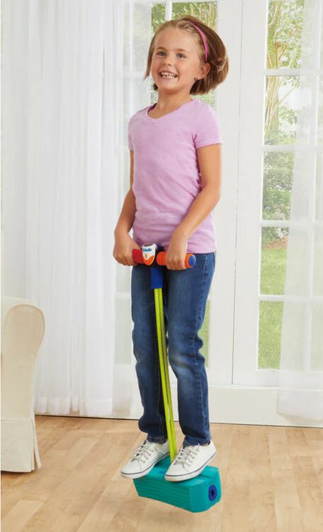 This sturdy pogo jumper squeaks with every hop, is covered in soft, durable foam and supports up to 250 lb. AND it has a built-in counter, so no more arguing over who has the most consecutive jumps! Batteries included.