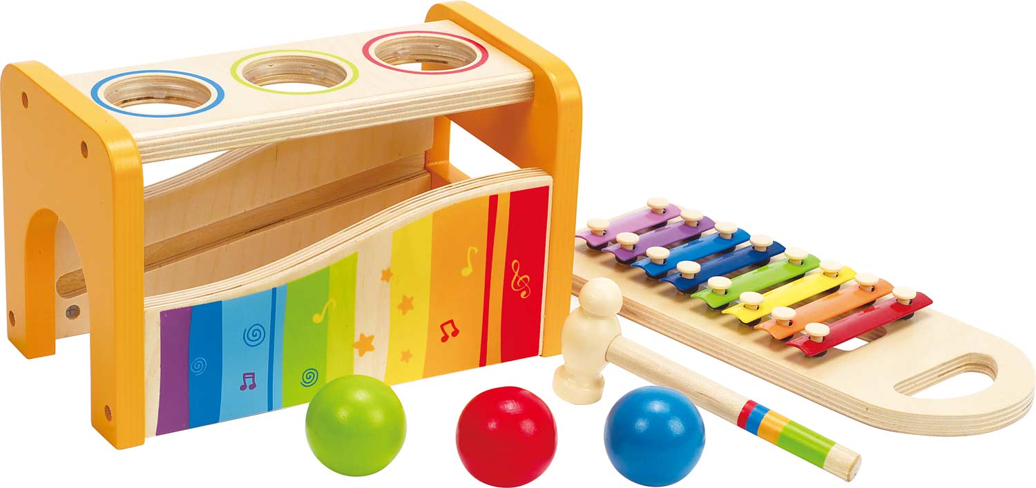 Is it a busy bench or a xylophone? The answer is yes! When baby pounds the balls through, they drop onto the keys below, tinkling out melodic sounds. Tired of hammering? Remove the keyboard and let the concert begin. A 3-in-1 award winner, this reimagined classic encourages logic and dexterity, while demonstrating cause and effect.